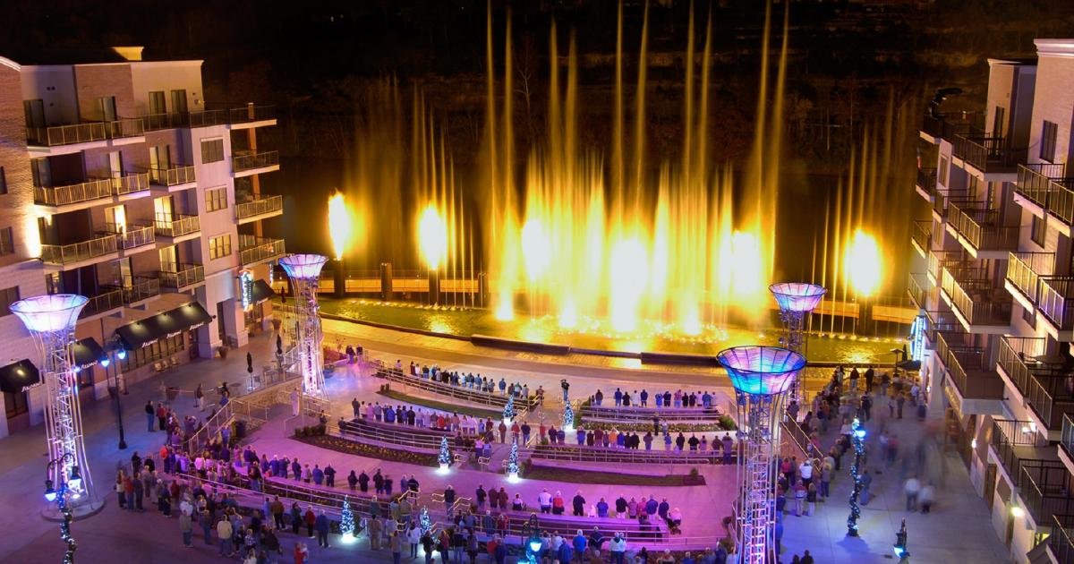 Branson Landing offers a beautiful and unique outdoor setting – unlike any in the Ozarks, perfect for celebrating that special occasion, never to be forgotten. From the spectacular, one of a kind $7.5 million fountain, synchronized to light, fire and music, to the breathtaking backdrop of Lake Taneycomo – the setting in Branson Landing’s Amphitheater is second to none, both day and night and year-around.